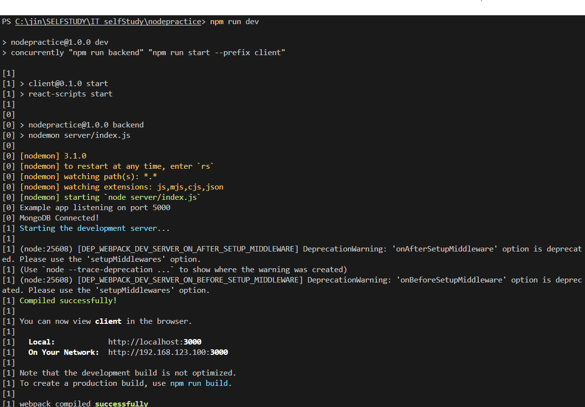 "dev" : "concurrently \"npm run backend\" \"npm run start --prefix client\"" 를 추가하고