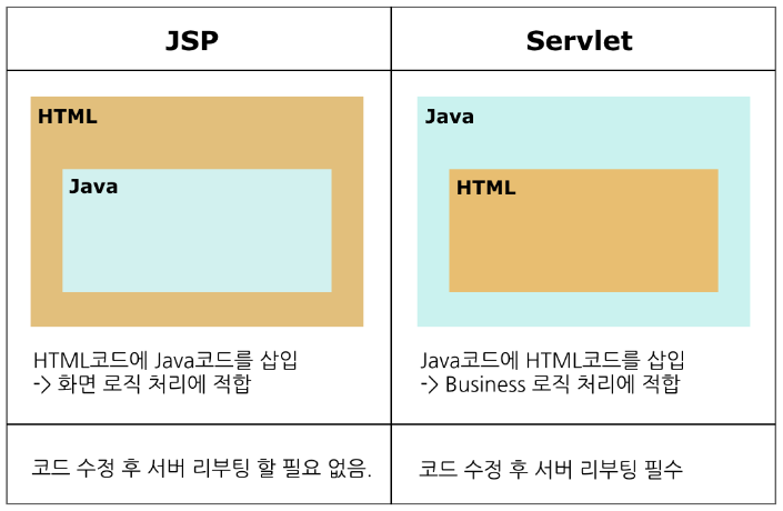 // 결론) Servlet 과 JSP는 사실 같다. JSP파일을 컴파일하면 Servlet 파일이 된다 :D