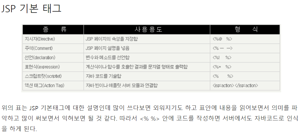 JSP는 기존의 단순한 html을 서비스하던 웹서버의 기능을 보다 발전시켜 웹 기반의 프로그램을 할 수 있도록 만든 것이다. 그리고 서블릿을 기반으로 하고 있으며 서블릿의 프로그램적인 요소를 발전시켜 사용자가 보다 쉽게 다룰 수 있도록 만든 스크립트 기반의 프로그램이다.