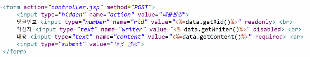 내용 변경 / 댓글 삭제 >> 본인일때에만 수행가능