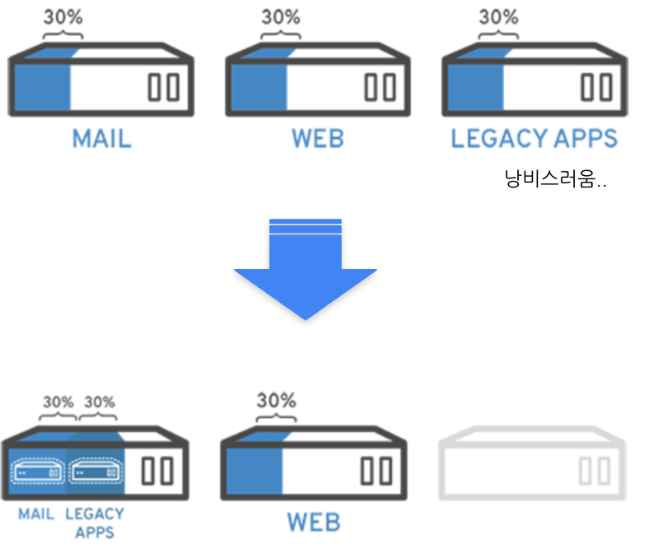 소프트웨어가 요구하는 서버 사양에 비해 소프트웨어를 실행 중인 서버의 성능이 훨씬 좋다 보니, 서버 성능을 10% 수준 밖에 활용하지 못하는 비효율이 발생