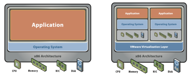 통적인 방식의 이러한 문제점 때문에, 사람들은 "가상화" 라는 개념을 생각해내게 됩니다.