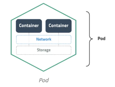 - 한 개 이상의 컨테이너와 스토리지, 네트워크 속성 가짐