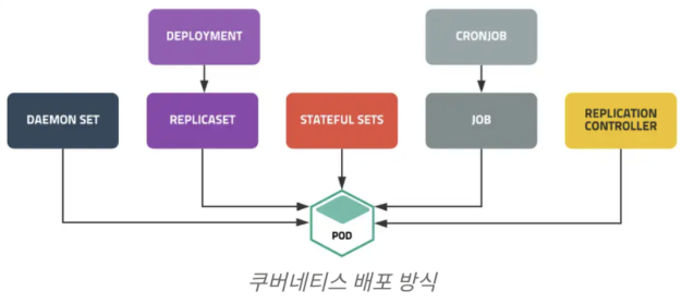 - Deployment, StatefulSets, DaemonSet, Job, CronJob 등 다양한 배포 방식을 지원