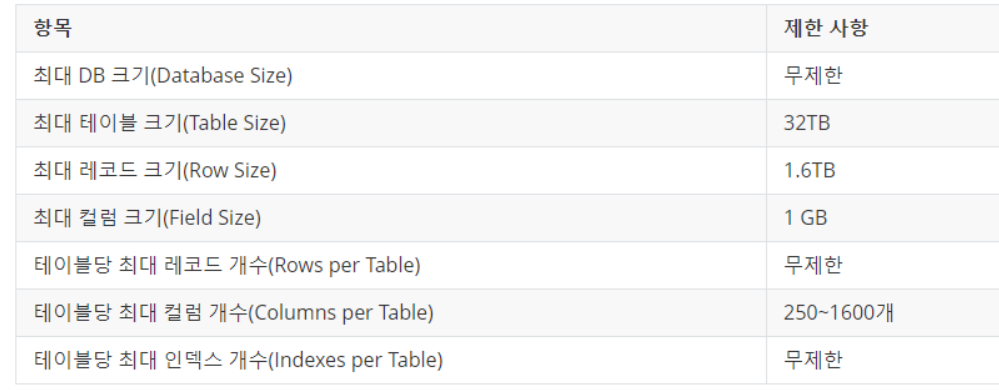 - 대용량 데이터 처리를 위한 Table Partitioning과 Tables Space 기능 구현이 가능